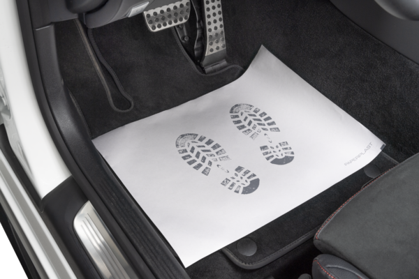 Paperplast antiskli gulvmatter. Laminerte gulvmatter plast/papir som suger opp fukt uten å «gå i oppløsning». Standard størrelse 50 x 37,5 cm. leveres på rull (500 stk.) eller som løsark (500 stk.) i kartong.