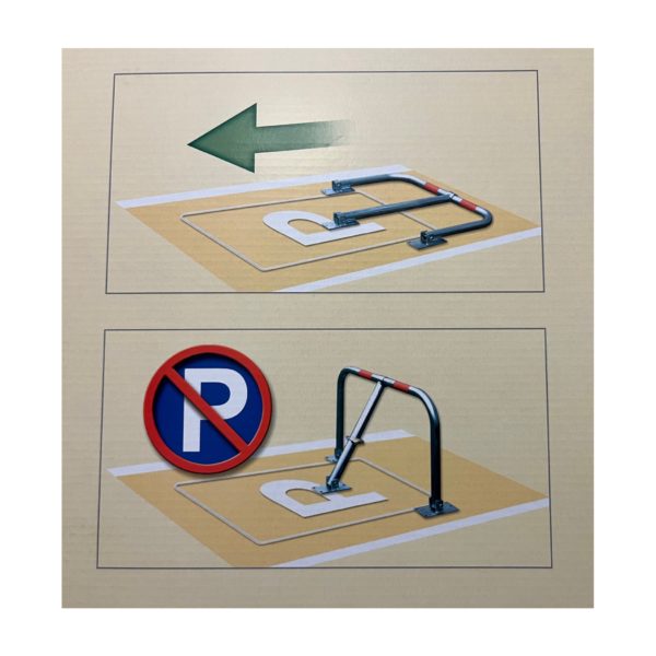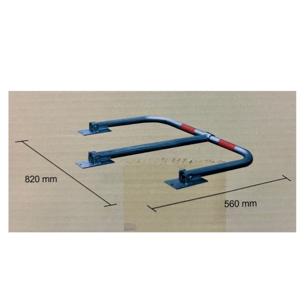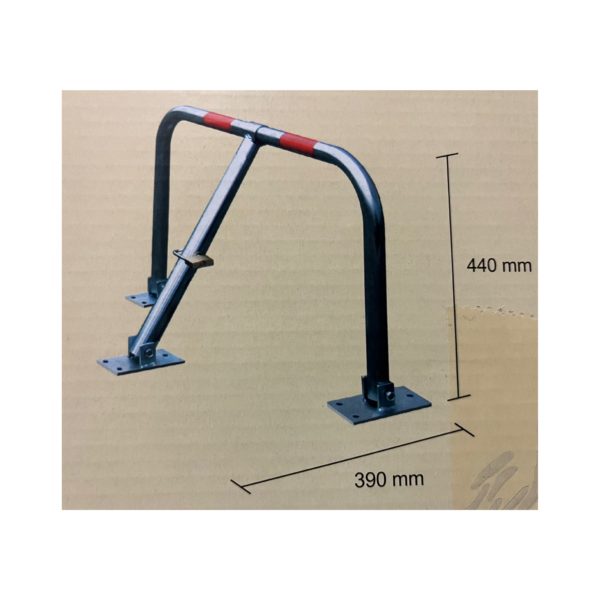 Hvis andre opptar parkeringsplassen din eller du ønsker et fysisk hinder i innkjørselen har vi løsningen for deg. Nå kan du enkelt låse plassen for uvedkommende når du forlater den. Bøylen av galvanisert stål kan legges ned så bilen kan parkeres over. Når du forlater plassen reises bøylen opp, støttestaget låses, og bøylen blir fast i stående stilling slik at plassen blokkeres fysisk for innkjøring. I oppreist stilling er bøylen 44cm høy. I nedfelt stilling er bøylen 82cm. bred og 56 cm. lang med støttestaget. Du må da rulle bilen inn på plassen slik at hjulene passerer på begge sider av de 82cm. installasjonen tar i bredden. Bøylen må derfor midtstilles på parkeringsplassen når den monteres. Bøylen boltes til underlaget. En liten hengelås følger med i settet. (bolter/festemateriell er ikke inkludert). Det er montert 2 stk. røde lysreflekterende foliebånd rundt bøylens øvre del.