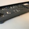 Solid norskprodusert regskiltholder med ferdig montert hengslet list i bunnen. Passert for type «SS» stort smal regskilt i dimensjon 110x520x3mm. Modellen holder godt på skiltet, er enkel å åpne/lukke og tåler vridninger og vibrasjoner uten å åpne seg. Støpt for det norske regskiltformatet og holderen har mange hullopsjoner for bruk av bilfabrikkert feste på bakluke. Fungerer også på buet frontfanger uten å «geipe» i skjøtene. Klisjèkostnad tilkommer med kr 490,- ved første gangs opptrykk av et trykkdesign. Trykkes med farge som har god holdbarhet i bilvaskemaskiner, ved selvvask og kjøring på norske vinterveger. Leveres i esker á 60 stk.